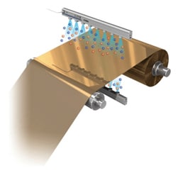 近年、銅箔はリチウムイオン電池や携帯電話向けプリント配線板用途などで品質要求が上がっているため、洗浄効果の向上が求められています。クリーナーで銅箔表面の切削油や切削屑を取り除く際に、静電気を除去すると洗浄効果が上がります。