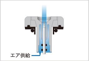 また、「Supersonic構造」が生み出す超音速のエアが電極針先端に衝撃波を形成することで、針先部分への外気の入り込みによる汚れを極限まで抑制し、驚異的な省メンテナンス性を実現しています。