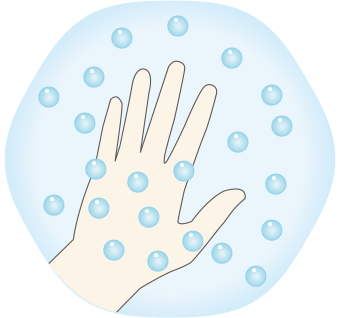 「湿度が高い」とはつまり、空気中の水分が多い状態です。空気中の水分が多い場所では、体にたくさんの小さな水の粒が触れます。すると、肌がしっとりしているように感じます。これは肌だけに限ったことではなく、ほかのさまざまなものに対しても起きる現象なのです。
