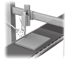 塗布・印字トラブルの対策に用いる除電器(イオナイザ)は、ノズルの先端を狙って設置します。狭いスペースに設置できるノズル型除電器(イオナイザ)が適しています。