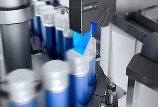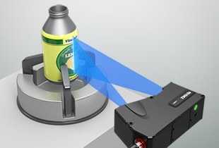 ボトル缶を高速回転させ、側面から高さ測定することで3次元形状を高速取得し、ボトルの座屈など外観不良を検査します。