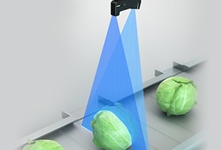 野菜の大きさ・体積をコンベアを静止させず自動全数測定します。測定値は野菜の階級分けや出荷先の自動仕分けに活用可能です。