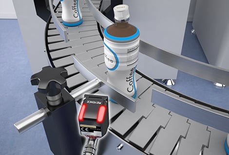 搬送中のボトルに透明なラベルが貼られているかどうかをカメラで検出し省人化します。