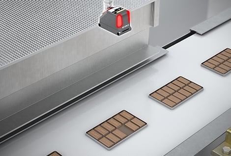 包装前のチョコレートが正しい数量で挿入されているか、また正しい方向で挿入されているかを検出し、ポカヨケを行います。