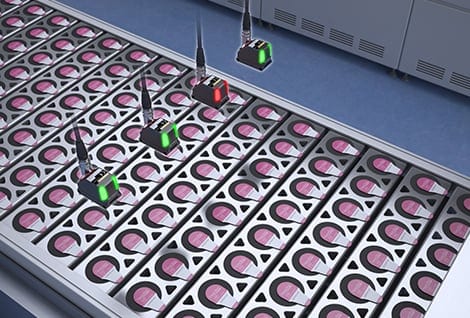 多列で搬送されている医薬品において、印字があるかないか複数個同時に検出し、ローコストでの判別を実現します。