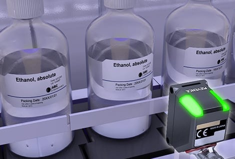 薬品ビンに貼付されているラベルに正しい日付が印字されているかを検出し、製品のトレーサビリティ対策を行います。
