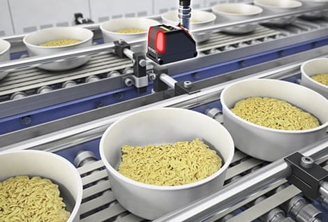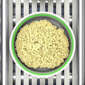 麺が欠け・かたより無くカップに投入されているかどうかを搬送コンベア上で検出します。