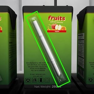 紙パック飲料に付属しているストローが抜けていないか、搬送中に横から検出し、ポカヨケを行います。