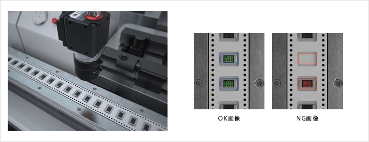 キャリアテープ内にあるICチップの有無・方向を画像センサで検査します。