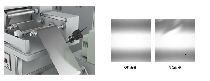 コンデンサ箔のピンホール・しわを画像センサで検査します。