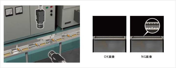 コネクタピンのコプラナリティ検査を画像センサで行います。