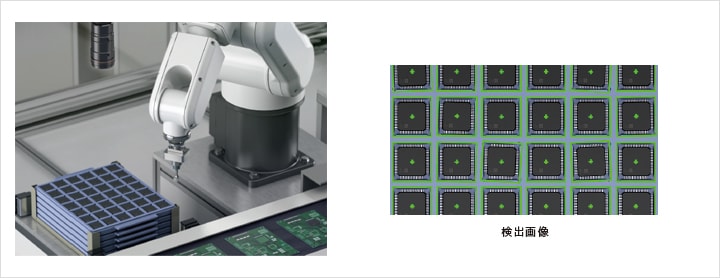 画像センサを使ってICチップのロボットピッキングの位置ずれ補正を行います。