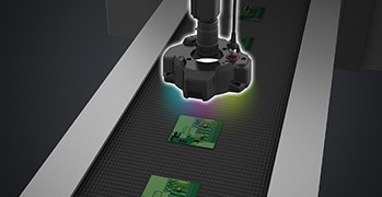 基板上の印字や2Dコードを画像センサで検査します。
