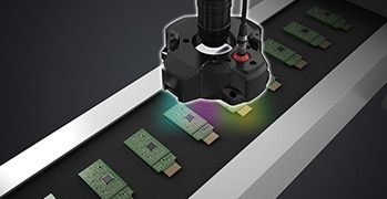 検査したい箇所と背景との色の差が不十分な場合、輪郭部分の欠けを検査することが難しいケースがありました。LumiTraxTMモードを使用し、4方向から照明を部分点灯させることで色味の差に関係なく輪郭部分を抽出することができ、安定した検査が可能となります。