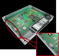 ICチップ表面にレーザ刻印された印字・2Dコードの読み取りを行います。1台の画像センサで品番などの印字と2Dコードの同時認識が可能です。