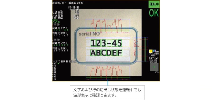 印字されている文字と判定文字列を比較して合否判定をする検査です。