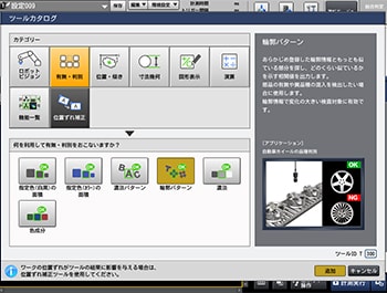 キーエンスの「CV-X480D」は、簡単に2Dロボットビジョンシステムと連携可能です。補正動作に応じたアプリケーションを選択するだけで、最短かつ適切な立ち上げが可能です。
