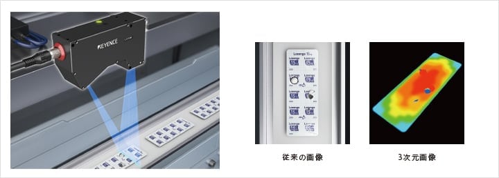 キーエンスの画像処理システム「CV-Xシリーズ」「XG-Xシリーズ」は、3次元検査にも対応しています。ブリスター包装後の破れなど外観検査は、表面の光沢や湾曲に影響され安定検査が困難でした。3次元画像処理であれば、表面状態に左右されることなく不良を検出できます。