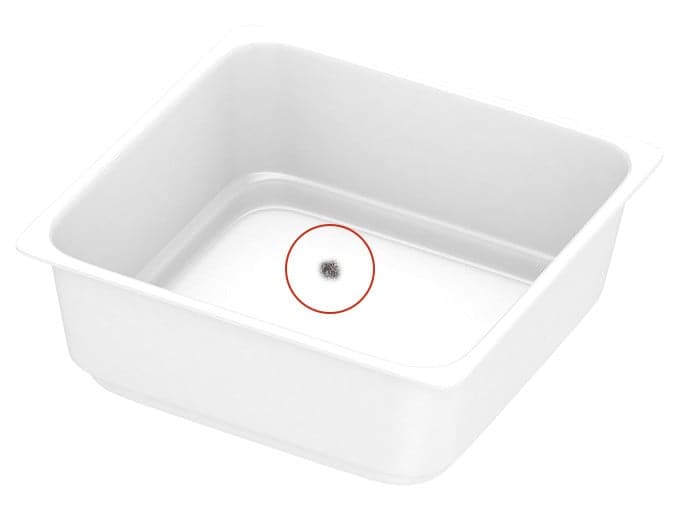 PSP(発泡ポリスチレン)は、やわらかい素材なので衝撃が加わると凹んだり、破れて穴があいたりします。破れ・凹みを防ぐには、金型への異物混入を監視したり、搬送時に衝撃が加わらないようにしたりすることが大切です。