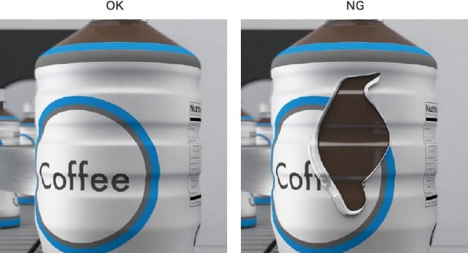 シュリンクは「縮む」という意味で、シュリンクフィルムは熱で収縮するフィルムのことを指します。シュリンクフィルムを使った包装を「シュリンク包装」と言い、シュリンク包装を行う工程を「シュリンク」と呼びます。ペットボトルのラベルは、このシュリンク包装を活用しています。シュリンク不良としては、シュリンクの過程でゴミやホコリが噛み込んでしまったり、衝撃によってフィルムが破れたりなどが挙げられます。破れは目視検査でも発見しやすいですが、ピンホールのような小さな穴は見落とすこともあるので画像処理システムなどの活用が有効です。また、製造工程に静電気除去装置を設置することでゴミやホコリの噛み込みを防止できます。
