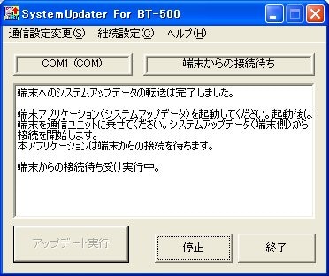 システムアップデータがスタートし、PCからBT-500へ本体システムの転送が始まります。