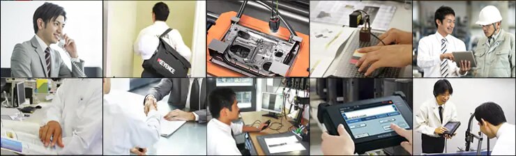 キーエンスは「メーカー直販」、お客さまと直接つながっています。技術的な質問やトラブルのご相談に対して、機器に一番詳しい技術営業がお客さまの現場に直接訪問し、現場で培った問題解決力や豊富な商品知識をもとにお客さまの課題解決に取り組みます。