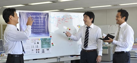 また商品勉強会はもちろん、業界の動向や生産現場トラブルのケーススタディなど、「情報」「成功事例」「ノウハウ」を共有し、いつでもお客さまのお問い合わせに的確にお答えできるよう、知識&スキルアップに努めています。