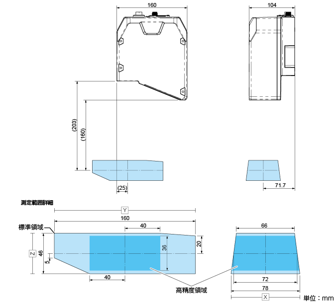 X軸測定範囲、Y軸測定範囲、Z軸測定範囲に囲まれた形状の領域の中にある、ワークの形状を計測します。