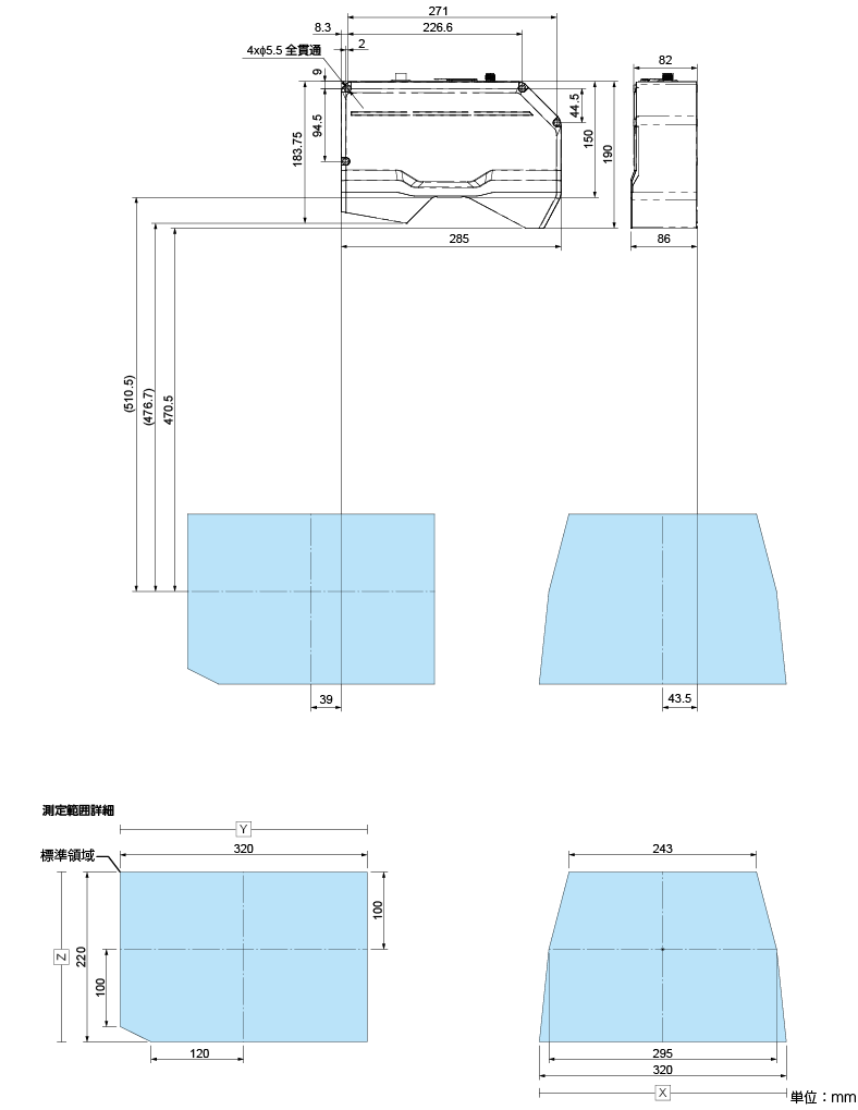 ※1 基準距離は、ヘッド最下端からZ軸(高さ)の測定中心までの距離です。