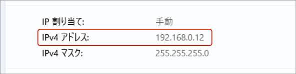 - [IPv4アドレス]に記載された数字が使用しているPCのIPアドレスです。