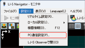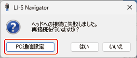 - ヘッドとLJ-S Navigatorを起動し、[PC通信設定]をクリックします。