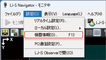 ツールバーの[設定]メニューから[機器情報]をクリックします。