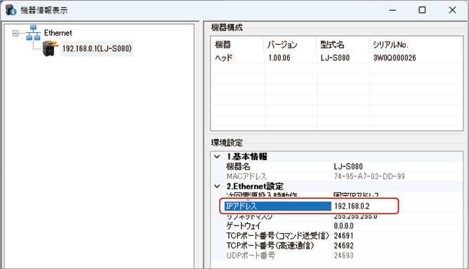 ※ 以降の手順では、ヘッドのIPアドレスは工場出荷時の状態である「192.168.0.1」(初期値)を前提とします。 |