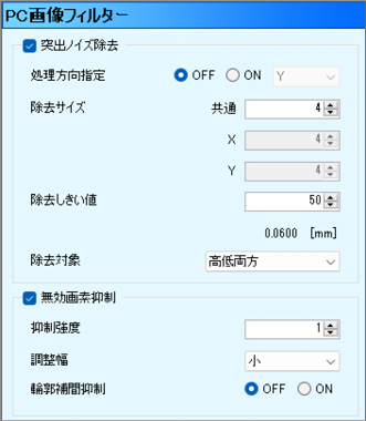 PC画像フィルター(突出ノイズ除去、無効画素抑制)の設定をおこないます。