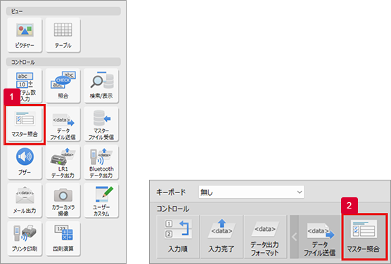 「コントロール」に「マスター照合」が追加されます。追加された「マスター照合」をダブルクリックすると、詳細な設定が可能です。
