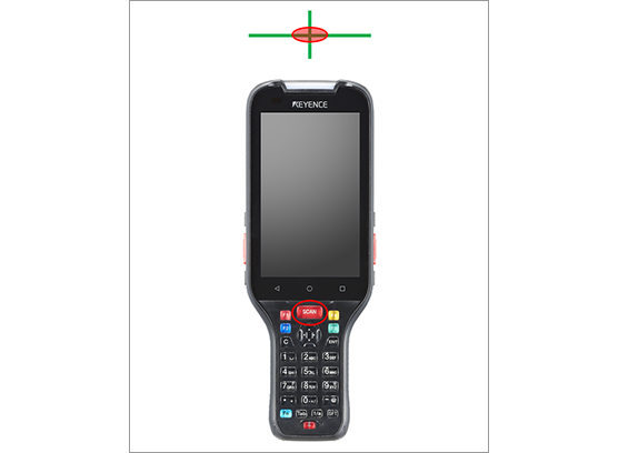 SCANキーを押している間に、緑エイマーの十字の交わるところ(赤丸)に文字列を合わせて、SCANキーを離してください。