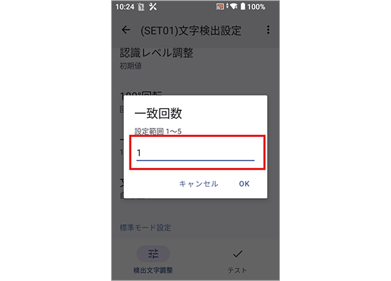 - 設定→読み取り→OCR→文字検出設定→一致回数で一致回数を増やす