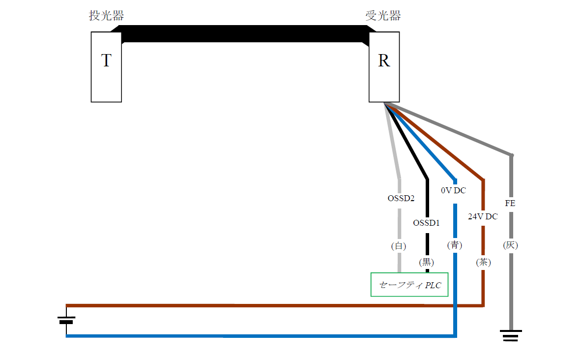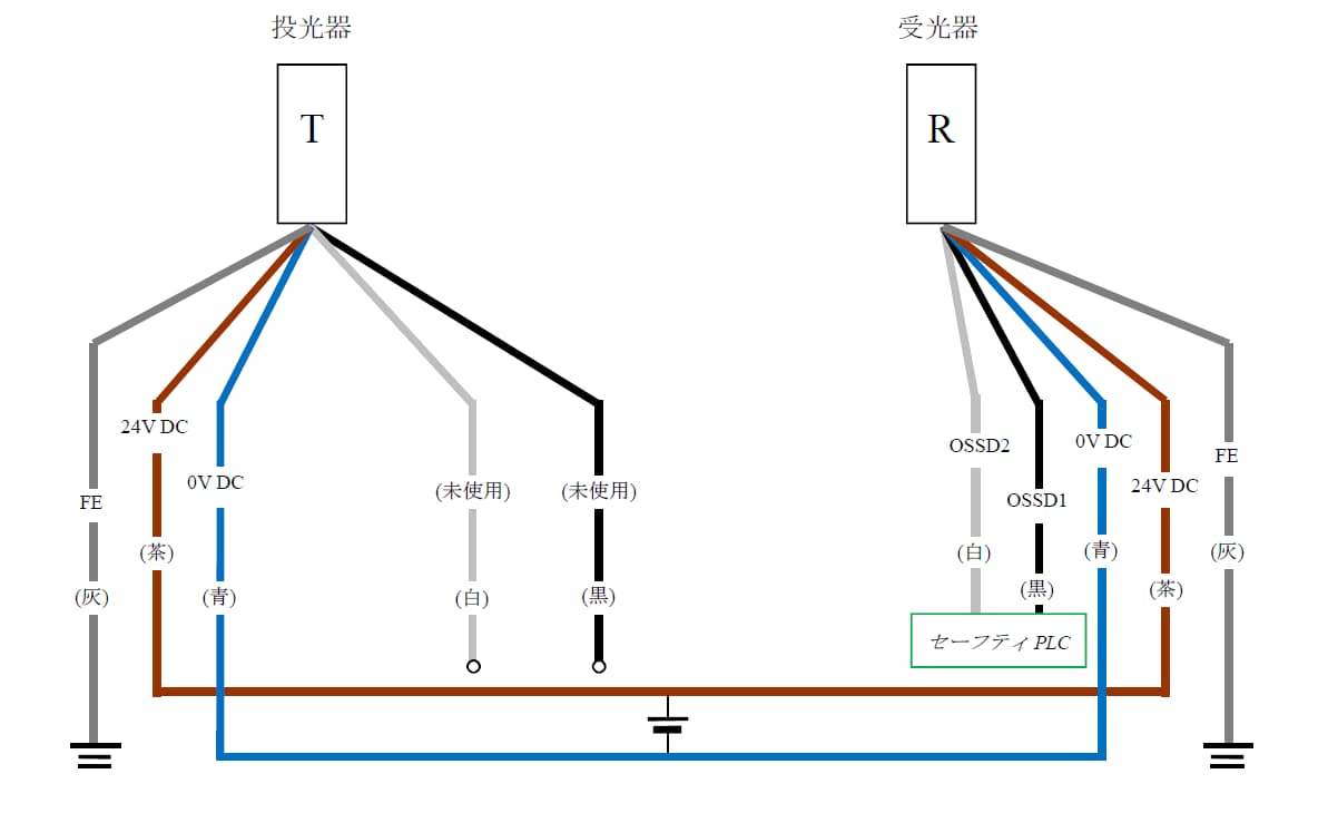 - セーフティPLCの0VをGL-Rの0Vと接続してください。
