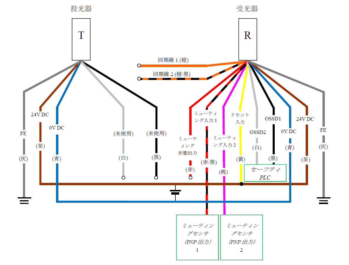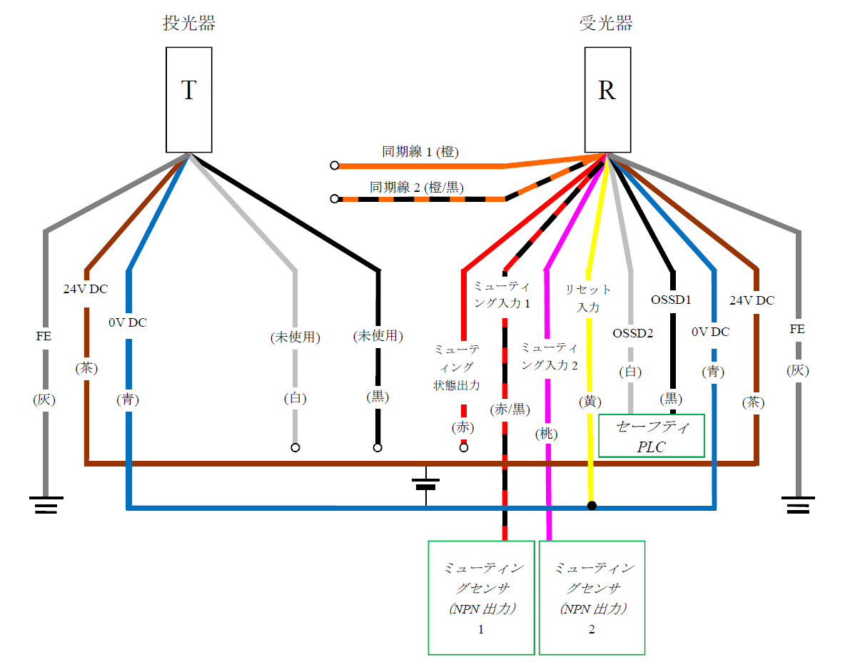 - セーフティPLCの0VをGL-Rの0Vと接続してください。