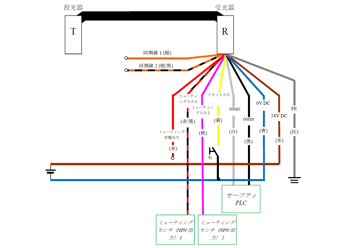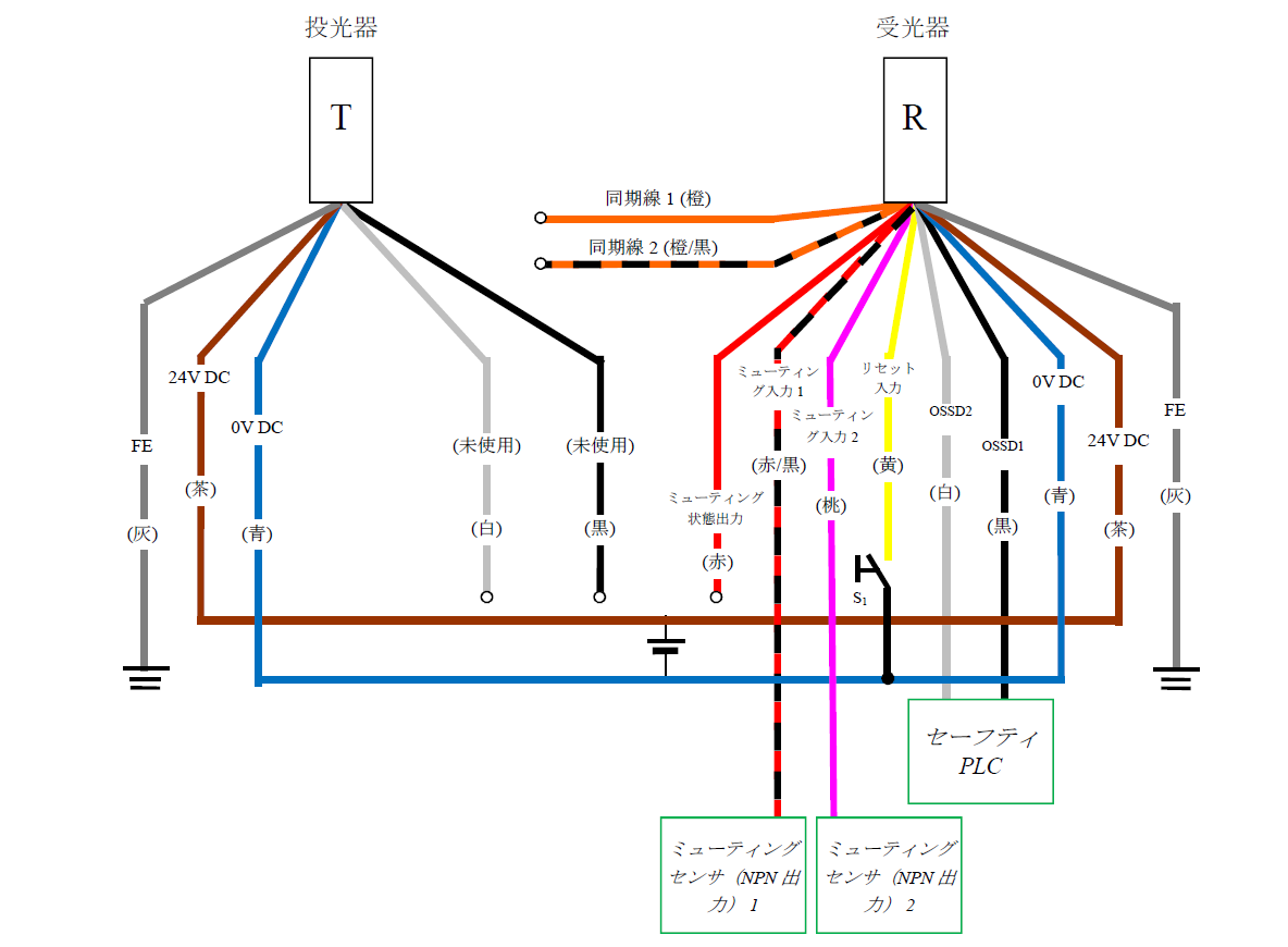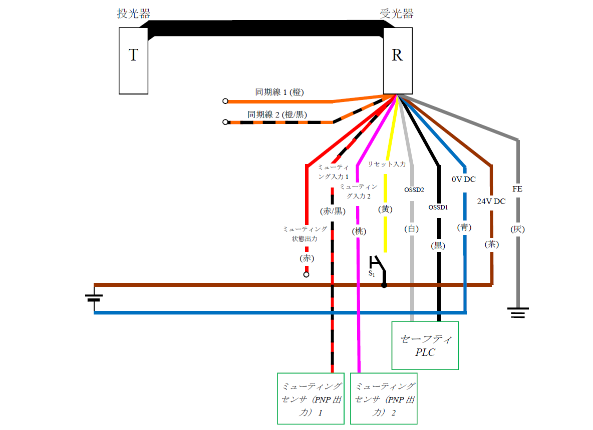 - セーフティPLCの0VをGL-Rの0Vと接続してください。