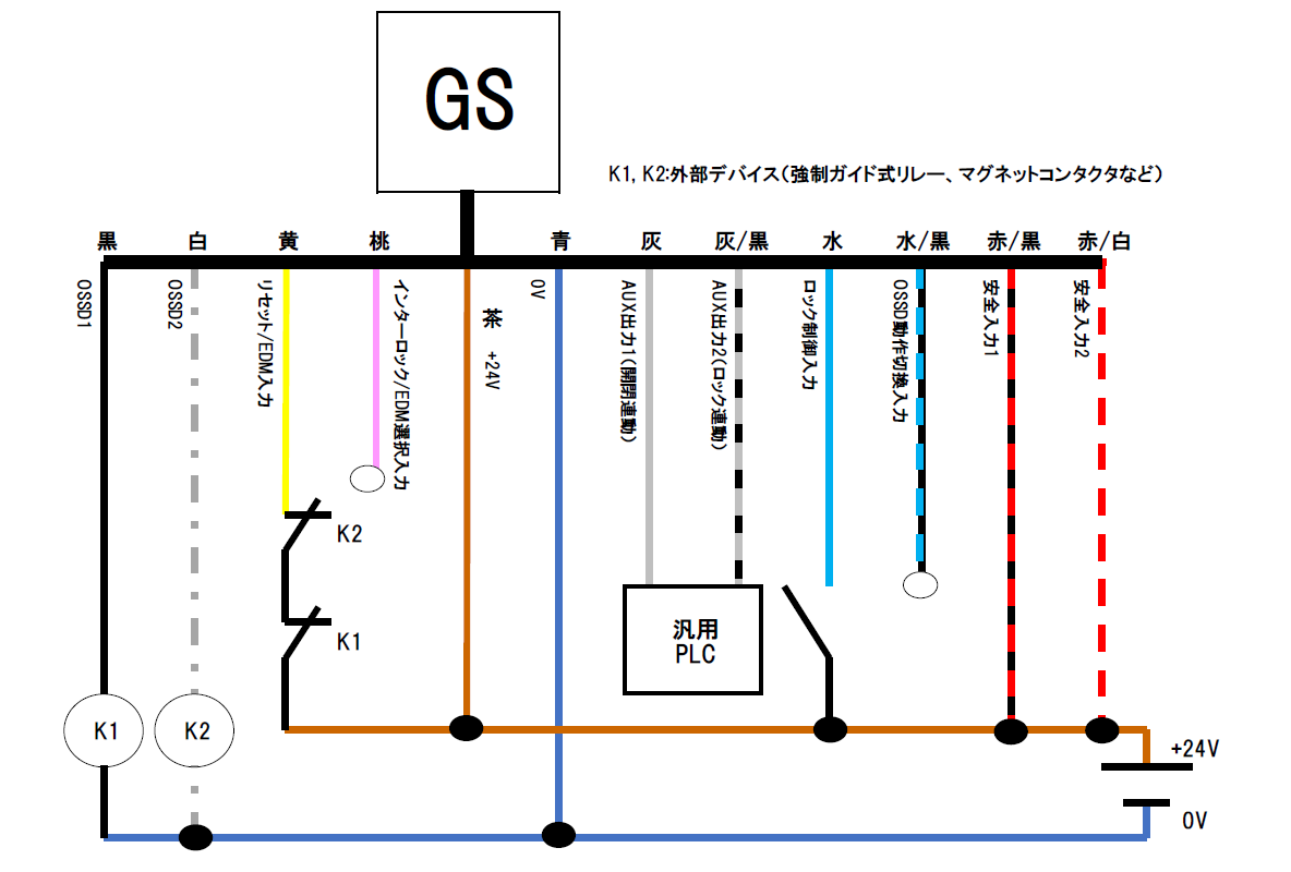 - 必須とはOSSDを正常にON/OFFさせるために必要な配線を指します。