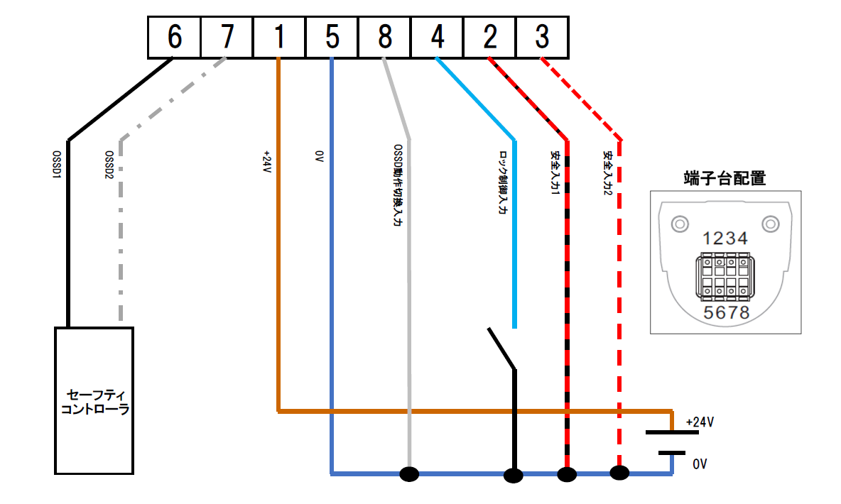 - 必須とはOSSDを正常にON/OFFさせるために必要な配線を指します。
